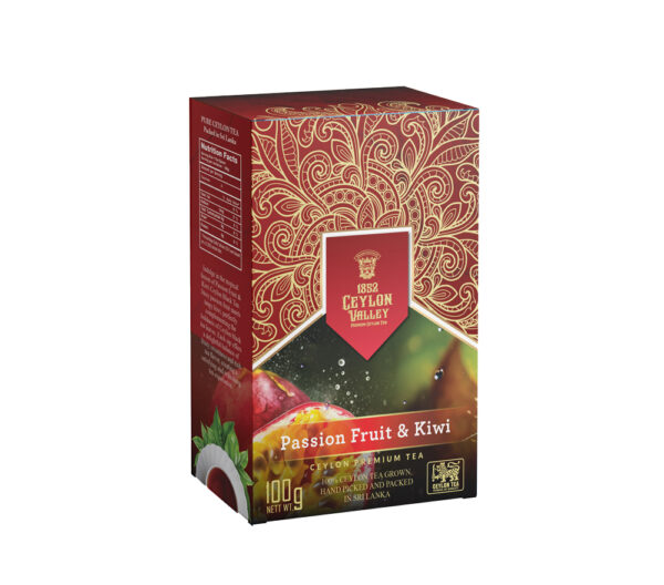 Experience the fusion of flavor with 1852 Ceylon Valley’s Black Tea Passion Fruit & Kiwi – 100g. Let your tea journey be as vibrant and refreshing as the tropical paradise it evokes.