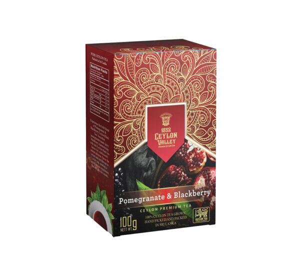 Experience the magic of 1852 Ceylon Valley’s Black Tea, Pomegranate & Blackberry – 100g. Let every cup transport you to a world of flavor and indulgence, where each moment is infused with pure tea bliss.